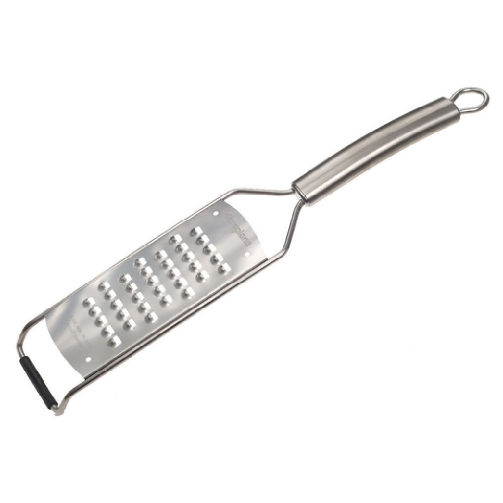 The JB Prince U942 Microplane® Pro Series Grater - 13"L x 3"W x 1"H, stands out in the professional culinary market with its extra coarse blade, specifically designed to tackle hard onions, soft cheese, cabbage, and potatoes. Featuring dimensions of 13 inches in length, 3 inches in width, and 1 inch in height, this grater is a versatile tool for both professional chefs and home cooks. Its construction from 18/8 stainless steel ensures durability and resistance to corrosion, making it a reliable kitchen companion. The non-slip rubber feet provide stability during use, enhancing safety and precision in grating tasks. Additionally, the grater includes a protective cover, safeguarding the blade when not in use and extending its lifespan. Its curved handles support an ergonomic grip, reducing hand fatigue during prolonged use. The JB Prince U942 Microplane® Grater is dishwasher safe, specifically on the top rack, facilitating easy cleaning and maintenance, crucial for busy kitchen environments. This grater is an essential tool for culinary professionals seeking efficiency and durability, blending high-quality material construction with thoughtful design features to meet the demanding needs of food preparation in diverse culinary settings.