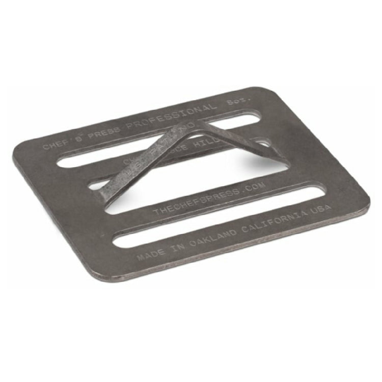 The JB Prince UA101 Chef's Press V28 Oz Presses is a highly efficient kitchen tool, meticulously crafted for culinary professionals seeking durability and performance. Made in the USA, this Chef's Press is constructed from high-quality stainless steel, ensuring long-lasting use and resistance to corrosion. It features a substantial weight of 8 oz, which is optimal for pressing various culinary creations such as meats and sandwiches, promoting even cooking and enhanced flavor infusion. The design of the press is geared towards convenience and practicality, as it is dishwasher safe, facilitating easy and efficient cleaning after use in fast-paced kitchen environments. This product is engineered for a diverse range of market segments within the culinary industry, from bustling commercial kitchens to sophisticated home cooking setups. Its robust stainless steel build appeals to professional chefs who demand reliability and precision, while its ease of maintenance makes it attractive to home cooks seeking professional-grade tools. The JB Prince UA101 Chef's Press V28 Oz Presses exemplifies the perfect blend of functionality and quality, making it an indispensable tool in any kitchen setting where consistency and ease of use are paramount.