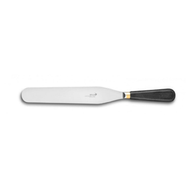 The JB Prince UA230 9 Pallet Knife is a meticulously crafted tool, defining precision and elegance in culinary artistry. Featuring a 9-inch blade, this knife is ideal for detailed and intricate tasks, offering chefs a balanced and agile experience. The brass bolster not only contributes to the knife's striking appearance but also ensures a well-weighted handle, promoting superior control and stability during use. The wooden handle enhances its aesthetic appeal while providing a comfortable grip for extended periods of kitchen work. This combination of traditional and high-quality materials makes it an indispensable tool for professionals in the culinary industry who seek reliability and refined craftsmanship. The JB Prince UA230 is designed to meet the needs of both seasoned chefs and culinary enthusiasts, making it a versatile choice for various segment markets within the industry. Whether used in high-end restaurants or ambitious home kitchens, this pallet knife stands as a testament to JB Prince's commitment to quality and excellence in kitchen tools.