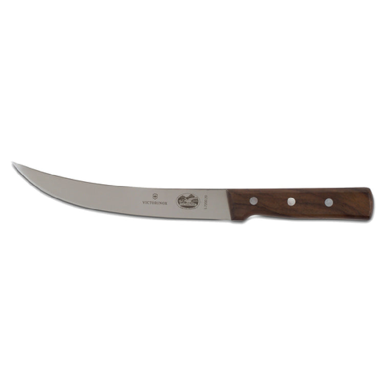 The JB Prince V826 8 Victorinox Boning Knife 8" Curved is a precision tool engineered for culinary professionals who demand reliability and performance in meat processing. With an 8-inch curved blade, this knife is crafted from high carbon stainless steel, offering exceptional sharpness and durability to withstand rigorous use in high-volume kitchens. The semi-flexible design enhances maneuverability, allowing for precise cuts and the ability to seamlessly separate meat from the bone. This knife is stamped, ensuring a lightweight feel that reduces fatigue during extended use periods. The rosewood handle provides a comfortable grip and an elegant aesthetic, reflecting a blend of functionality and style. Made in Switzerland, the JB Prince V826 8 Boning Knife is available exclusively in the US, highlighting its premium quality and specialized craftsmanship. The combination of high-grade materials and expert manufacturing makes it a versatile choice for butchers, chefs, and culinary enthusiasts who prioritize efficiency and precision in their cutting tools. This knife’s design caters to the unique needs of various market segments within the culinary industry, offering a reliable solution for tasks ranging from delicate filleting to robust butchery. Its high carbon content and ergonomic features underscore its status as a distinguished tool in professional kitchen settings.