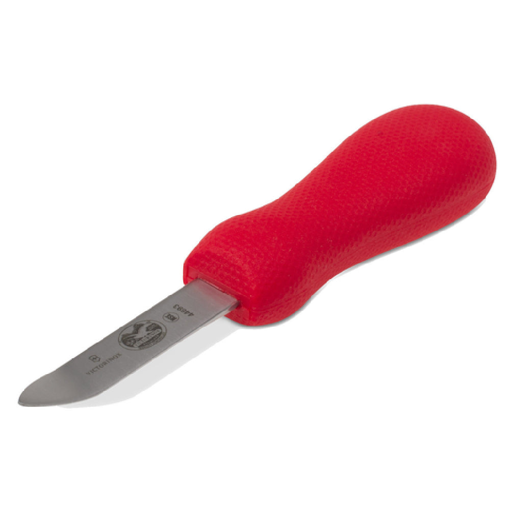 The JB Prince V865 Victorinox Oyster Knife stands out as a precision tool designed for the meticulous task of oyster shucking, featuring a 2-1/2 inch blade crafted in the New Haven style. This specialized knife is equipped with a stainless steel blade, ensuring robust durability and resistance to corrosion, crucial for maintaining performance in demanding kitchen environments. The handle, constructed from high-quality plastic, is ergonomically designed to offer a secure grip, further enhanced by its vibrant red color for easy identification among kitchen tools. This product is exclusively sold in the US, making it a unique item within the local market. Its design and material choice cater to professional chefs, seafood restaurants, and culinary enthusiasts who require reliable and efficient tools to handle seafood with precision. The New Haven style blade is particularly favored for its versatility and ease in opening various types of oysters, making the JB Prince V865 Victorinox Oyster Knife an essential tool in both commercial and home kitchens where seafood preparation is a focus. Its blend of functionality, durability, and safety makes it a preferred choice for those seeking a dependable oyster knife.