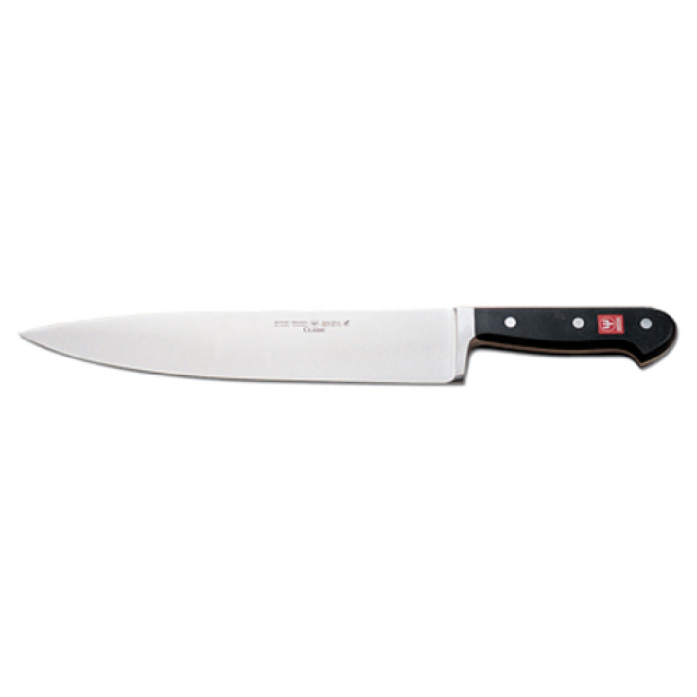The JB Prince W400 8 Wusthof Classic Chef's Knife 8-inch forged is a precision culinary tool that combines durability and performance, making it indispensable for both professional chefs and home cooking enthusiasts. This knife features a high carbon stainless steel blade, known for its exceptional sharpness and long-lasting edge retention, which is essential for precise and efficient cutting tasks. The 8-inch blade length provides a versatile range, suitable for various kitchen tasks from chopping vegetables to slicing meats. The knife is skillfully forged, ensuring a balanced weight and superior strength that enhances cutting accuracy and reduces hand fatigue during extended use. It is equipped with a black plastic handle, ergonomically designed for a comfortable and secure grip, allowing for improved maneuverability and control. Made in Germany, this chef's knife is a testament to the renowned German craftsmanship and quality, embodying a blend of traditional techniques and modern manufacturing processes. The JB Prince W400 8 Wusthof Classic Chef's Knife is an excellent choice for culinary professionals seeking reliable performance and for culinary students or home cooks looking to elevate their kitchen toolkit with a high-quality, versatile knife.