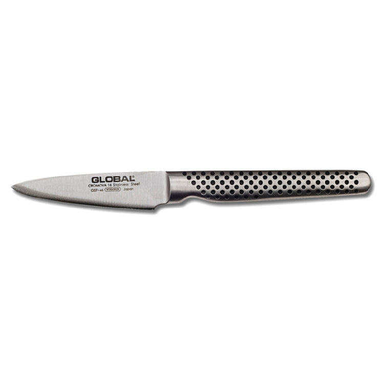 The JB Prince Y538 Global Paring Knife 3" Spear Point is a meticulously crafted tool designed for precision and durability, making it an essential choice for culinary professionals and home enthusiasts alike. This paring knife features a 3-inch blade forged from high carbon stainless steel, renowned for its sharpness and corrosion resistance. The spear point design enhances its precision in tasks like peeling, trimming, and intricate garnishing, offering superior control and versatility in food preparation. Made in Japan, the knife embodies traditional craftsmanship combined with modern engineering, ensuring a balance between performance and longevity. Its compact size makes it ideal for intricate cutting tasks, supporting chefs in maintaining efficient workflow across various kitchen settings. This knife's construction supports both professional kitchens and home cooking environments, providing exceptional quality and reliability. Each element of the Y538 is engineered for optimum functionality, from its ergonomic handle to its finely honed blade, making it a valuable tool across diverse culinary settings. The JB Prince Y538 Global Paring Knife exemplifies precision and quality, catering to the distinct needs of culinary experts seeking durability and efficiency in their cutlery collection.
