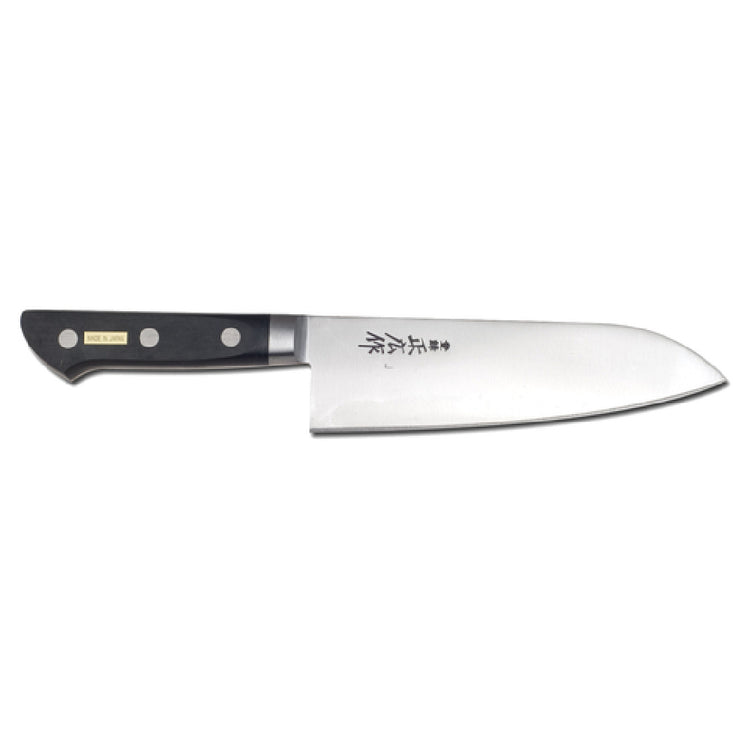 The JB Prince Y604 Masahiro Santoku Knife 7" Forged is a meticulously crafted kitchen tool that embodies the precision and quality synonymous with Japanese craftsmanship. Featuring a forged, smooth edge carbon steel blade, this knife offers exceptional sharpness and edge retention, making it a valuable asset for chefs and cooking enthusiasts across various culinary fields. The 7-inch blade length provides a versatile cutting experience, suitable for slicing, dicing, and chopping a wide variety of ingredients with ease and precision. Complementing the blade is a durable black plastic handle that ensures a comfortable and secure grip, enhancing user control and safety during food preparation. Made in Japan, this Santoku knife reflects a balance of traditional artistry and modern manufacturing techniques, offering reliability and performance in professional kitchens as well as home environments. Its distinctive design and robust construction make it particularly suitable for culinary professionals looking for a dependable and efficient tool, while its user-friendly features cater to home cooks appreciating fine kitchenware. The JB Prince Y604 Masahiro Santoku Knife stands out as a unique kitchen companion, whether for its professional-grade craftsmanship or its adaptability to various cooking styles and tasks.