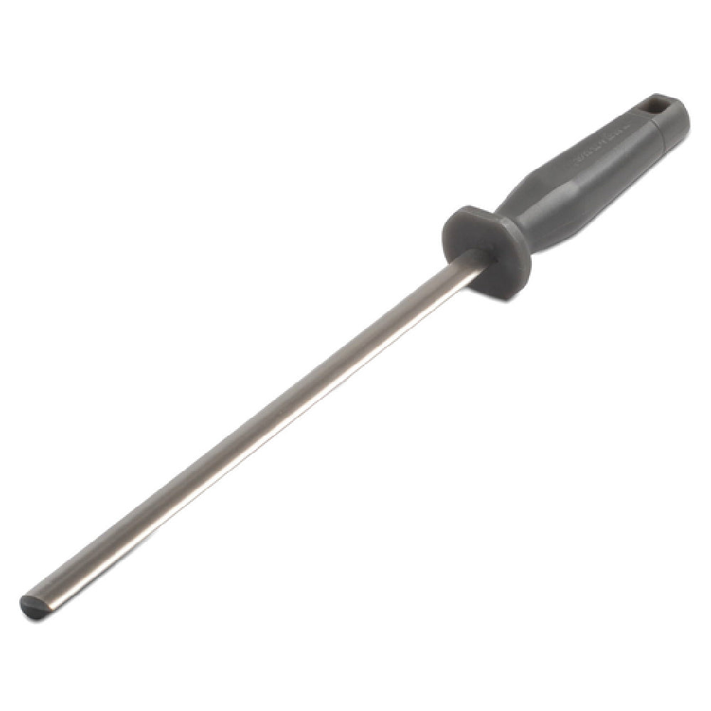 The JB Prince Z101 Steel Sharpener is a precision tool featuring a 10-inch length and an 1800 grit diamond mesh, designed specifically for honing tasks. This sharpener is distinguished by its black color, making it a sleek addition to any professional or home kitchen. The 1800 grit diamond mesh is the key technical feature, providing a fine, smooth surface ideal for maintaining the edge on high-quality knives and blades. This level of grit is particularly suited for finishing edges, offering a level of refinement that coarser sharpeners cannot achieve. Targeted for culinary professionals and enthusiasts alike, the JB Prince Z101 meets the needs of those who demand precision and care in maintaining their cutting tools. Its length and grit make it versatile across different types of knives, ensuring that chefs can achieve the sharpness needed for perfect culinary execution. The JB Prince Z101 is specifically crafted for honing, meaning it’s perfect for regular maintenance rather than heavy sharpening, thus preserving the lifespan of your knives. This sharpener is an essential tool for chefs, butchers, and anyone who values the performance of their kitchen tools, effectively bridging the gap between professional and home use.