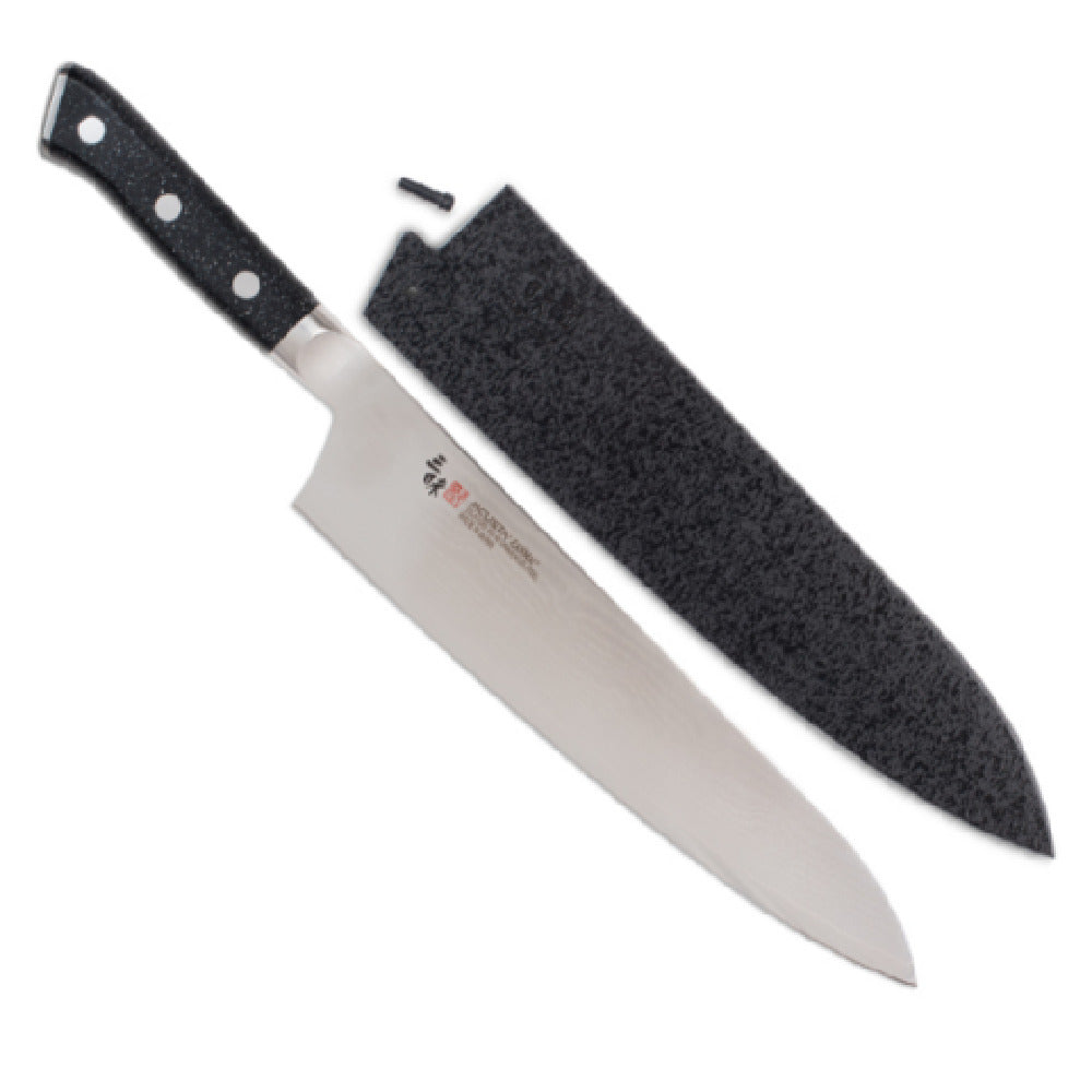 JB Prince Z304 Zanmai Pro Damascus Gyuto SE 9.4-in Black Lacquer Saya Cover Stainless Steel And Corian