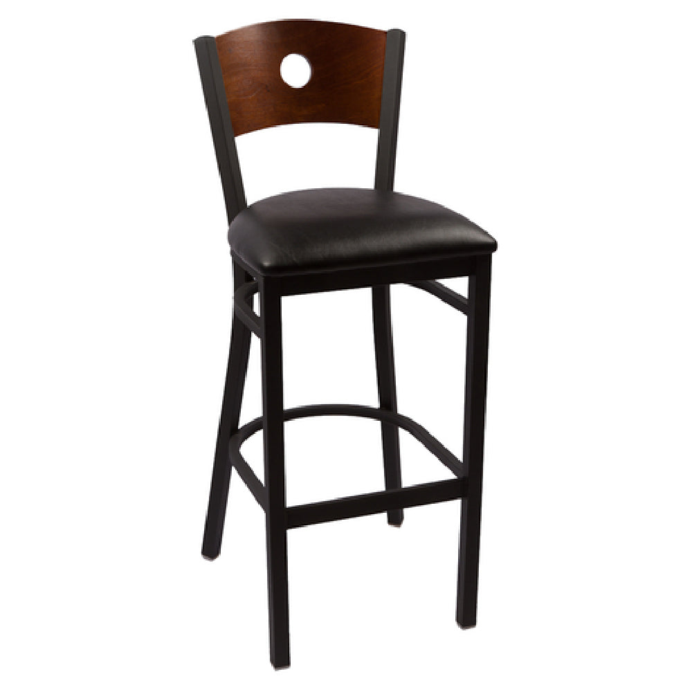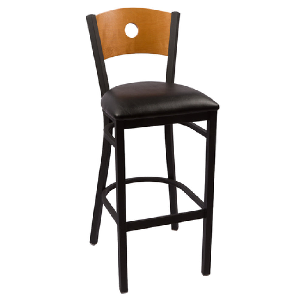 The JMC Furniture CIRCLE SERIES CLEAR COAT BARSTOOL VINYL is an expertly crafted seating solution designed for indoor use, characterized by its unique blend of style and durability. This barstool features a distinct wood back with a circle cutout, enhancing its aesthetic appeal while providing ergonomic support. The seat is upholstered in high-quality vinyl, offering both comfort and easy maintenance, making it ideal for commercial settings such as cafes, bars, and restaurants. Its sturdy metal frame is complemented by an industrial clear coat finish, which not only adds to its modern, sleek appearance but also ensures longevity and resistance to wear and tear. An integrated footrest provides additional comfort, catering to diverse customer needs. Assembly is required, allowing for efficient packaging and transportation. The CIRCLE SERIES CLEAR COAT BARSTOOL VINYL is a versatile choice within the hospitality and retail furniture markets, offering a unique value proposition through its combination of style, practicality, and durability, appealing to a wide range of clientele seeking quality seating solutions.