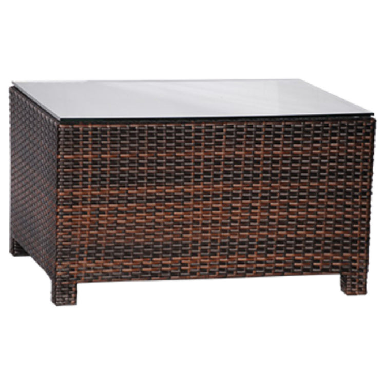The JMC Furniture ESPRESSO COFFEE TABLE Coffee Table 16"H X 32"W Outdoor is a sophisticated addition to any outdoor living space, blending style with durability. Measuring 16 inches in height and 32 inches in width, this table is designed to complement a variety of outdoor settings, from patios to garden areas. It features a sturdy glass solid top that offers a sleek surface for beverages, snacks, or decorative items. The table's aesthetic appeal is enhanced by a synthetic espresso weave, which not only provides a rich, textured appearance but also ensures long-lasting use, resisting weather elements typically encountered in outdoor environments. Supporting this elegant weave is a robust aluminum frame, known for its lightweight yet strong nature, making the table both easy to move and stable. This combination of materials and design makes the JMC Furniture ESPRESSO COFFEE TABLE a versatile piece suitable for different market segments, including residential outdoor furniture enthusiasts and commercial enterprises such as cafes or outdoor event venues. The careful selection of materials and dimensions ensures that this coffee table meets the demands of style and function, making it a valuable asset for enhancing any outdoor space.