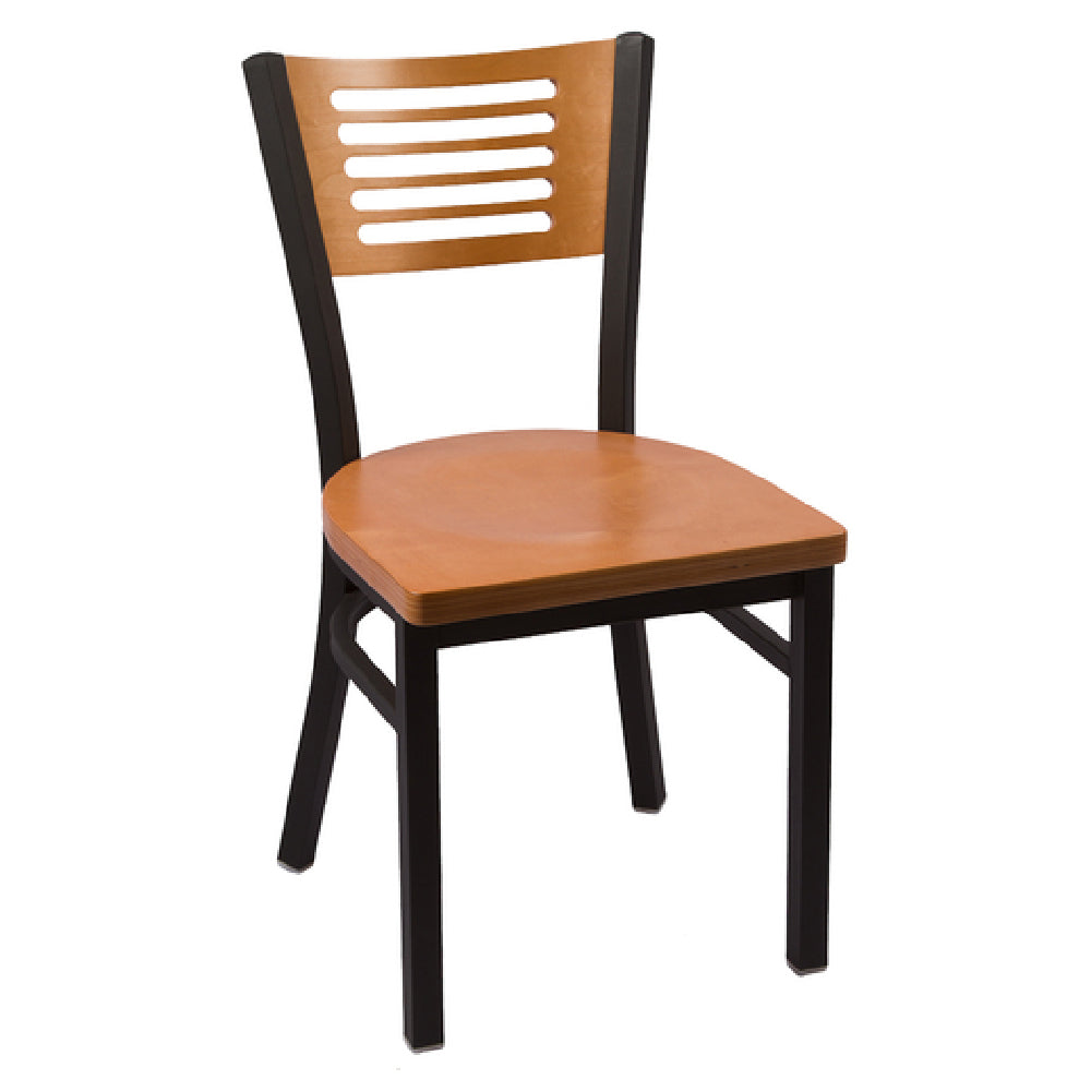 The JMC Furniture JONES RIVER SERIES CHAIR WOOD - Jones River Series Side Chair is a meticulously crafted seating solution, designed for indoor environments where style meets functionality. This chair is distinguished by its slotted wood back and complementary wood seat, delivering both aesthetic charm and comfort. The robust metal frame, finished with a sleek black powder coat, ensures longevity and stability, making it a reliable choice for various settings. Assembly is required to set up this elegant piece, which underscores its customizability and adaptability to different interior styles. The Jones River Series Side Chair is versatile, ideal for dining areas in residential homes, cafes, or bistros, and it appeals to markets that value a blend of modern design and traditional craftsmanship. The combination of wood and metal materials not only highlights its contemporary appeal but also promises durability, catering to spaces that demand both elegance and resilience. This chair represents a unique value proposition, balancing aesthetics with structural integrity, making it an indispensable addition to any indoor seating arrangement.