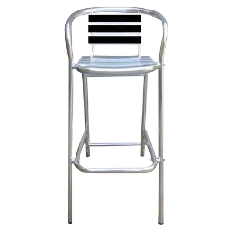 The JMC Furniture OUTDOOR PINZON BLACK BARSTOOL is a sophisticated seating solution designed specifically for outdoor environments, providing both style and durability. Featuring a sleek black synthetic teak back and seat, this barstool offers a modern aesthetic while ensuring long-lasting performance against the elements. The robust aluminum frame adds to its structural integrity, making it a reliable choice for a variety of outdoor settings, from residential patios to commercial establishments like bars and restaurants. An integrated footrest enhances comfort, making it suitable for extended use. This barstool merges functional design with quality materials, offering versatility across different market segments within the outdoor furniture industry. The use of synthetic teak provides an eco-friendly alternative to traditional wood without compromising on appearance or durability. Ideal for those seeking a sleek, modern addition to their outdoor space, the JMC Furniture OUTDOOR PINZON BLACK BARSTOOL stands out for its combination of stylish design and practical features. Its ability to blend seamlessly into various decor styles makes it a favored choice among homeowners, hospitality venues, and event planners. This barstool is tailored for those who prioritize both aesthetics and resilience in their outdoor furniture selections.