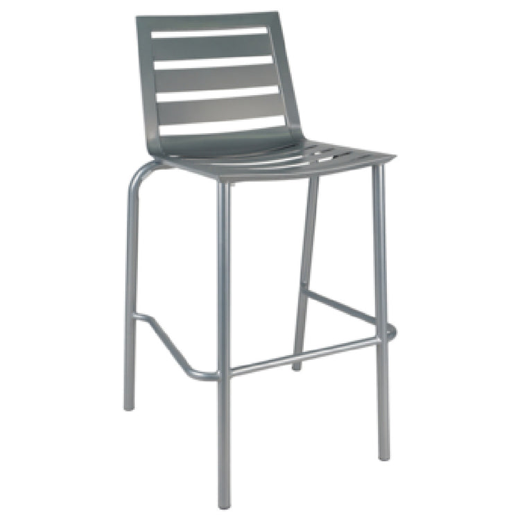 The JMC Furniture ZARCO BARSTOOL SILVER is an exemplary piece designed for outdoor use, featuring a meticulously crafted all-metal frame that ensures both durability and style. This barstool is distinguished by its metal seat and back, providing a sturdy and comfortable seating experience ideal for diverse outdoor settings. The entire structure is coated with a silver powder finish, enhancing its resistance to the elements and giving it a sleek, modern aesthetic. This finish not only protects the metal from corrosion but also makes the barstool a versatile addition to various environments, from residential patios to commercial outdoor dining spaces. The ZARCO BARSTOOL SILVER's robust construction and contemporary design make it an attractive option for hospitality businesses aiming to furnish their outdoor areas with reliable and visually appealing seating solutions. Its metal build allows for easy cleaning and maintenance, beneficial for high-traffic areas, while the minimalist silver hue complements a wide range of design themes. This product uniquely addresses the needs of different market segments within the furniture industry by offering a combination of functionality, durability, and style, rendering it a practical choice for both private and commercial outdoor settings.