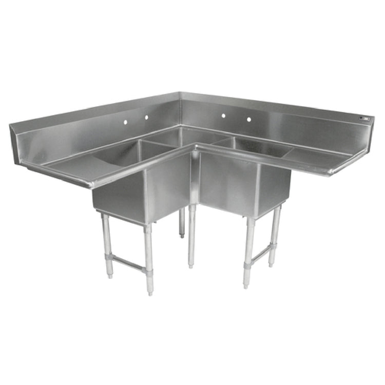 John Boos 3PBCS244-2D36 Pro-Bowl Corner Sink 3-compartment 88-1/2"W X 88-1/2"D X 44-1/16"H Overall Size