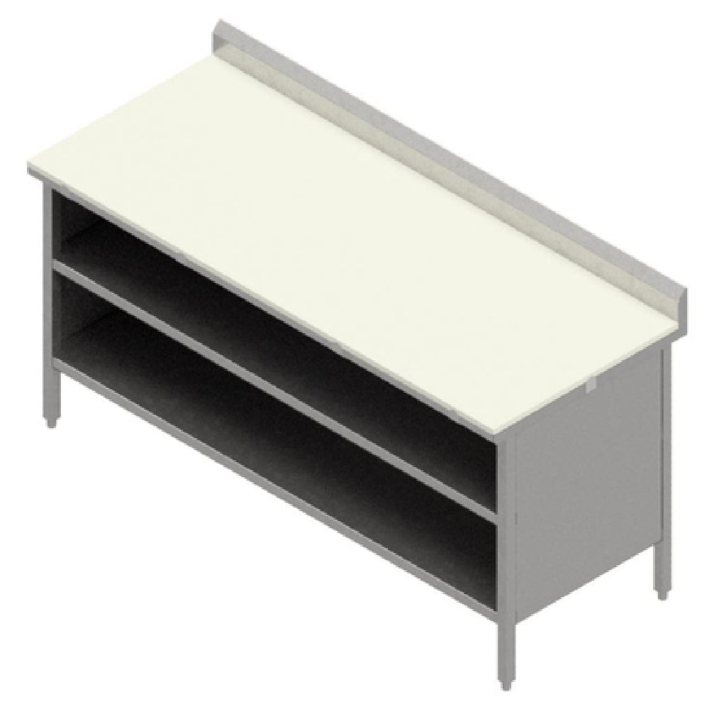 The John Boos EBOP3R5-3048 Work Table Cabinet Base with Open Front is a meticulously designed unit measuring 48 inches in width and 30 inches in depth, tailored for professionals seeking both functionality and durability. It features a 3/4-inch reversible poly surface that provides versatility and long-lasting performance in demanding environments. This work table incorporates a 5-inch backsplash to prevent spillage and maintain cleanliness. The Stallion Safety Edge on the front enhances safety by minimizing sharp edges. Crafted with a 16/300 stainless steel top and stainless steel construction, this table is built to withstand rigorous use while maintaining a sleek appearance. An undershelf is included for additional storage, optimizing space efficiency in busy kitchens or workspaces. The work table stands on 1-inch adjustable bullet feet, ensuring stability on uneven surfaces and allowing for height customization. Fully welded for durability and stability, the unit comes ready to use with an all-welded set-up, underscoring its robust build. Certified by NSF, it meets high standards of public health and safety, making it an ideal choice for various industry segments, including food service, hospitality, and industrial applications.
