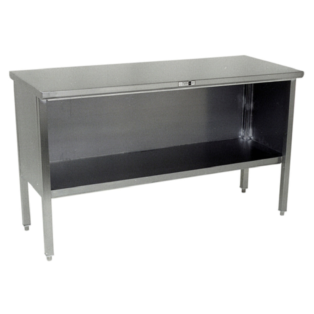 John Boos EBOS4-2496 Work Table Cabinet Base With Open Front 96"W X 24"D is a versatile and highly functional piece of equipment designed for various professional environments like commercial kitchens, laboratories, and industrial spaces. The work table boasts a substantial 96-inch width and 24-inch depth, providing ample workspace for diverse applications. Its flat top is crafted from 14/300 stainless steel, making it highly durable and resistant to corrosion, ensuring longevity even in demanding settings. The Stallion Safety Edge on the front and back enhances safety, reducing the risk of injuries during use. With a 90-degree turndown on the sides, the table offers a sleek, professional appearance while maintaining practicality. The stainless steel base and undershelf provide additional storage and support, contributing to better organization and efficiency in work environments. The table is equipped with 1-inch adjustable bullet feet, allowing for stability on uneven surfaces. All components are welded in place, ensuring a robust and stable setup. This product is NSF certified, emphasizing its adherence to public health standards, making it a reliable choice for establishments requiring strict hygiene and safety compliance. The John Boos EBOS4-2496 is a strategic investment for any industry needing a durable, spacious, and versatile work surface.
