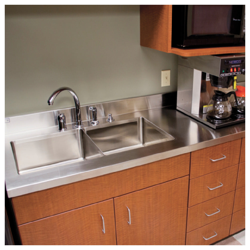 - 1-1/2" thick with 6" boxed backsplash for durability