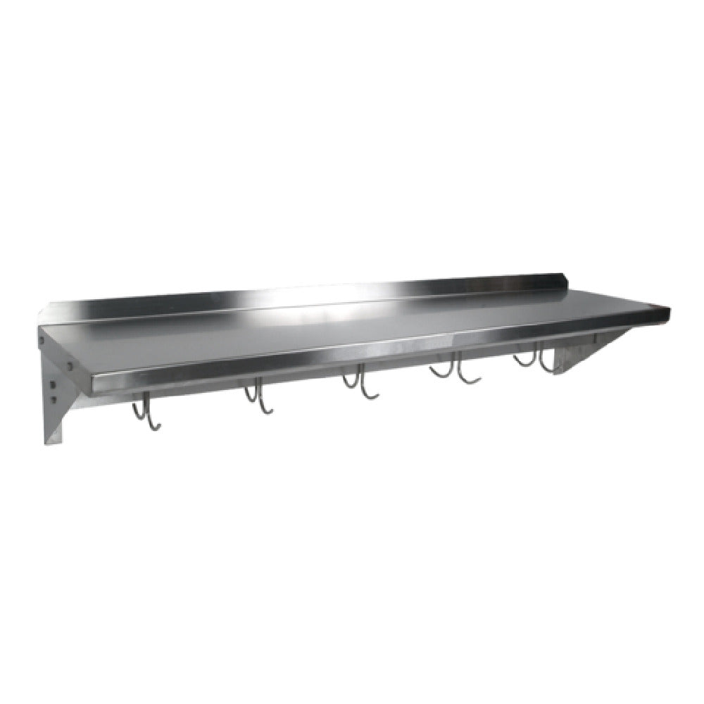 The John Boos MENSL24-P Cucina Mensola Shelf is an expertly designed wall-mount unit crafted from high-quality 18/300 stainless steel, offering both durability and style for various professional environments. Measuring 24 inches in width and 12 inches in depth, this shelf is an efficient space-saving solution that accommodates a range of storage needs. Its polished welded joints not only enhance the aesthetic appeal but also ensure structural integrity and longevity. The MENSL24-P is equipped with a stainless steel utensil bar and includes three stainless steel hooks, providing versatile storage options for busy kitchens or food preparation areas. This product is particularly valuable for commercial kitchens, restaurants, and food service establishments seeking a reliable and hygienic shelving solution that complements stainless steel appliances and fixtures. Its robust construction and sleek design make it suitable for various settings within the culinary industry, providing a practical and stylish addition to any professional kitchen space.