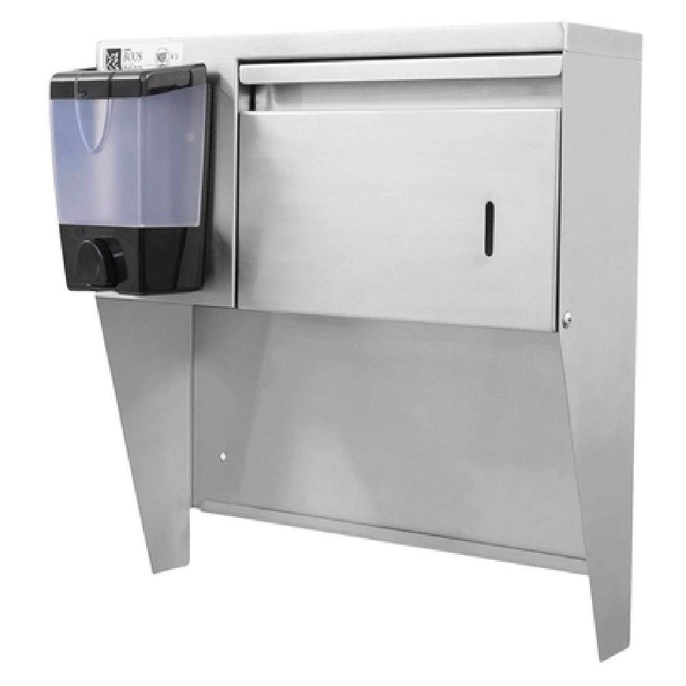 The John Boos PB-STD-1410 Towel and Soap Dispenser stands out with its precise dimensions of 17-1/4"W x 4-3/4"D x 18"H, making it a seamless addition to any professional setting requiring functionality and space efficiency. Crafted from durable 18/300 stainless steel, this dispenser is engineered to resist corrosion and maintain its sleek appearance over time, essential for maintaining hygiene standards in high-traffic environments. This model is specifically designed to complement 17"W hand sinks featuring 14" x 10" bowls, ensuring compatibility and streamlined installation. Certified by NSF, the dispenser meets stringent public health standards, reinforcing its suitability for commercial kitchens, healthcare facilities, and other industries where sanitation is paramount. The combination of towel and soap dispensing in one unit optimizes space and enhances convenience, making it a practical choice for businesses aiming to maximize utility without sacrificing quality. With its robust construction and thoughtful design, the John Boos PB-STD-1410 Towel and Soap Dispenser presents a reliable solution for maintaining cleanliness and orderliness, tailored to meet the demands of various market segments requiring durable and efficient dispensing systems.