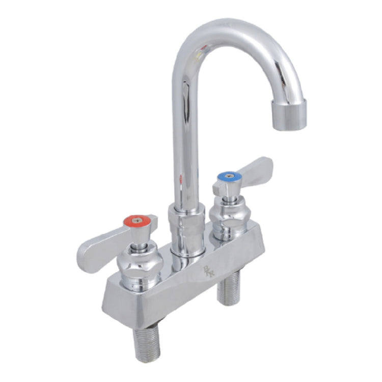 The John Boos PBF-4DM-3GLF Heavy Duty Faucet is a robust deck mount fixture designed to meet the rigorous demands of commercial and industrial environments. Featuring a distinctive 3-inch gooseneck spout, this faucet is crafted for precise water delivery and ease of use. It is built with 4-inch centers and equipped with 1/4 turn ceramic cartridges, ensuring smooth operation and long-lasting durability. The faucet includes color-coded hot and cold indicators for user convenience and safety. An integral check valve is incorporated to prevent backflow, maintaining water quality standards. The unit connects via a 1/2-inch NPT and boasts a sleek chrome finish, adding a touch of elegance to its heavy-duty functionality. The John Boos PBF-4DM-3GLF is NSF and cCSAus certified, highlighting its compliance with health and safety regulations. Additionally, it is ADA compliant, ensuring accessibility for all users. As a lead-free faucet, it adheres to strict environmental and safety standards, making it suitable for a wide range of applications within food service, healthcare, and industrial sectors, where reliability and compliance are paramount.