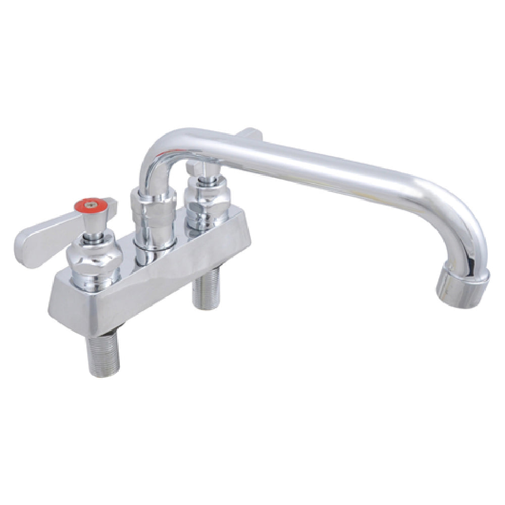 The John Boos PBF-4DM-6LF Heavy Duty Faucet is a precision-engineered deck mount faucet, specifically designed for rigorous industrial applications. Featuring a 6-inch swing spout, this faucet provides flexibility and ease of use in various operational settings. It is equipped with 4-inch centers and utilizes 1/4 turn ceramic cartridges for enhanced durability and smooth operation, minimizing wear over time. With color-coded hot and cold indicators, users can effortlessly identify water temperature, facilitating safer handling. The faucet includes an integral check valve, ensuring optimal water flow control and preventing backflow. Designed with a 1/2-inch NPT connection, it ensures compatibility with standard plumbing systems. The chrome finish adds a professional luster, while its compliance with NSF, cCSAus, and ADA standards certifies its safety and accessibility credentials. Notably, this model is lead-free, promoting environmental and health safety, making it an ideal choice for diverse sectors such as hospitality, healthcare, and educational institutions. Whether in a restaurant kitchen or a school cafeteria, the John Boos PBF-4DM-6LF Heavy Duty Faucet combines functionality with style, meeting the stringent demands of high-use environments with reliability and precision.