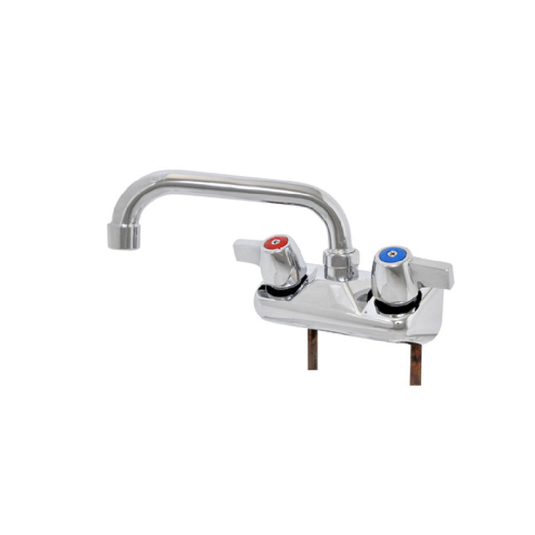 The John Boos PBF-W2-6LF Economy Faucet is an efficient and cost-effective solution designed for various commercial applications, featuring a splash mount installation that ensures ease of use and functionality. Equipped with a 6-inch swing spout, this faucet is adept at providing flexibility and reach, making it suitable for diverse workspace configurations. It boasts 1/4 turn ceramic cartridges, which enhance the longevity and reliability of the faucet, ensuring smooth operation over time. With 4-inch centers and color-coded hot/cold indicators, users can easily manage and distinguish between water temperatures, thus enhancing user experience and safety. An integral check valve is incorporated to prevent backflow, maintaining water purity and system integrity. The faucet comes with a 1/2-inch NPT connection, making it compatible with standard plumbing configurations. Its chrome finish not only adds to its aesthetic appeal but also provides a robust layer of protection against corrosion and wear. The John Boos PBF-W2-6LF is NSF and cCSAus certified, verifying its compliance with public health and safety standards, and it is a lead-free faucet, making it a responsible choice for environmentally conscious businesses. This product is ideally suited for industries requiring reliable and durable water dispensing solutions.