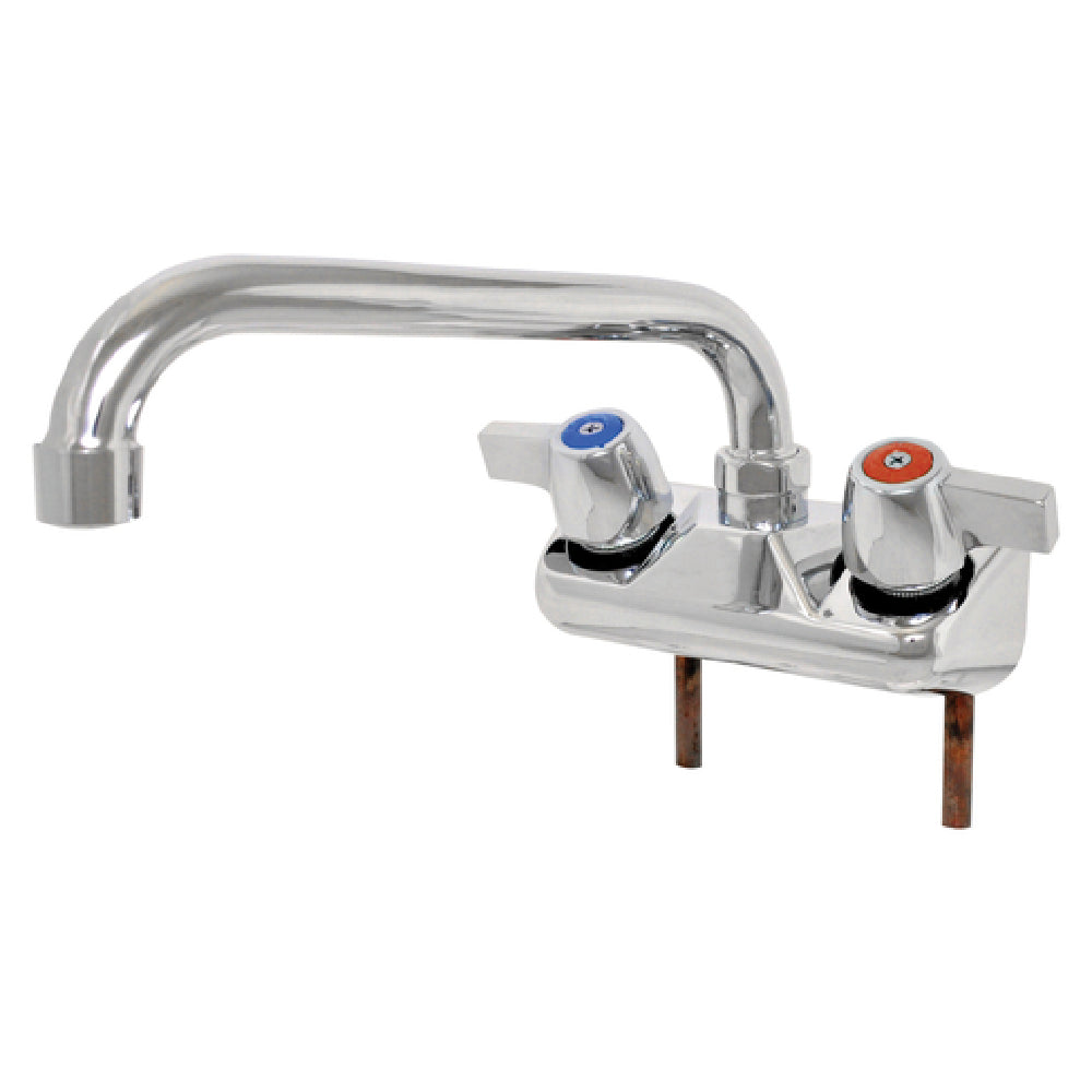 The John Boos PBF-W2-8LF Economy Faucet - splash mount - 8" swing spout is a versatile and durable plumbing solution designed for a variety of settings. With a significant 8" swing spout, this faucet provides ample reach and flexibility, making it a smart choice for both residential and commercial kitchens. The faucet is equipped with 1/4 turn ceramic cartridges, ensuring smooth operation and long-lasting performance. The color-coded hot/cold indicators offer intuitive use, while the integral check valve ensures a reliable flow of water. Designed with 4" centers, the PBF-W2-8LF makes installation straightforward. Its 1/2" NPT compatibility further adds to its ease of installation in diverse plumbing configurations. The chrome finish not only enhances its aesthetic appeal but also provides resistance to corrosion, ensuring a lasting shine. Importantly, the faucet meets NSF standards and is cCSAus certified, verifying its compliance with North American safety standards. As a lead-free faucet, it aligns with modern health and safety requirements. The John Boos PBF-W2-8LF Economy Faucet is an efficient and dependable choice, suitable for any setting that demands both functionality and compliance with stringent safety standards.
