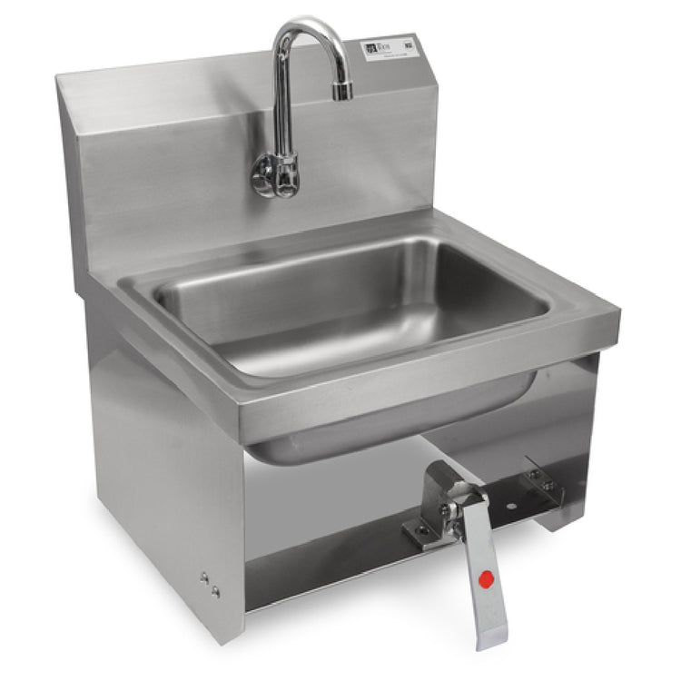 The John Boos PBHS-W-1410-KV1MB Pro-Bowl Hand Sink is expertly crafted for professional settings, offering a compact design with dimensions of 14 inches in width, 10 inches from front-to-back, and a 5-inch deep bowl. This wall-mounted unit integrates seamlessly into various environments, making it suitable for use in restaurants, healthcare facilities, and industrial kitchens where hygiene is paramount. It features a single centered splash mount faucet hole with a gooseneck spout, and includes a single knee valve for hands-free operation, enhancing sanitation and ease of use. The sink is equipped with a 2-inch drain opening and comes complete with a basket drain and wall brackets for convenient installation. Constructed entirely from stainless steel, this hand sink ensures durability and longevity. It is NSF and CSA-Sanitation certified, which affirms its adherence to high public health and safety standards. The inclusion of a knee valve faucet further underscores its practicality and efficiency in high-demand environments, positioning it as an invaluable asset across diverse industry sectors requiring reliable and hygienic handwashing solutions.