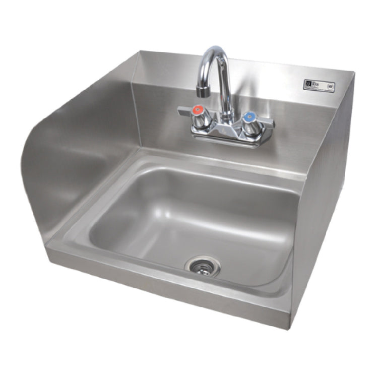 The John Boos PBHS-W-1410-P-SSLR Pro-Bowl Hand Sink is an expertly crafted wall-mounted unit, designed for professional environments requiring stringent hygiene standards. This compact sink features a 14-inch width, a front-to-back measurement of 10 inches, and a 5-inch deep bowl, making it a versatile addition to various settings, from bustling commercial kitchens to healthcare facilities. It is engineered with splash mount faucet holes on 4-inch centers, accommodating a splash mount faucet which is included. The sink's infrastructure is further enhanced by a 1-7/8 inch drain opening equipped with a basket drain, effectively managing waste and water flow. To prevent splashes and maintain cleanliness, it is fitted with left and right side splashes. Constructed entirely from durable stainless steel, this hand sink ensures longevity and ease of maintenance. Supporting its installation, the product comes with a mounting bracket, facilitating secure wall attachment. Certified by NSF and CSA-Sanitation, it meets rigorous health and safety standards, underscoring its reliability in professional use. The John Boos PBHS-W-1410-P-SSLR Pro-Bowl Hand Sink combines robust construction with thoughtful design, catering to the precise needs of various industry segments, ensuring both practicality and compliance in demanding environments.
