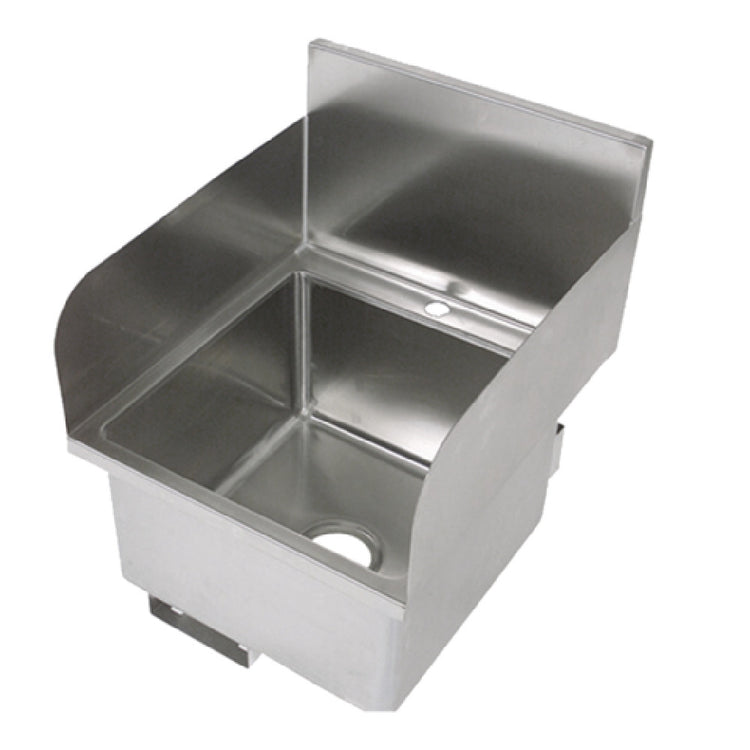 The John Boos PBHS-W-1616-SSLR Pro-Bowl Hand Sink is a meticulously designed wall-mounted unit, measuring 16 inches in width, 16 inches front-to-back, and featuring a 10-inch deep bowl. This sink is tailored for high-demand environments requiring efficient handwashing solutions. It includes a 12-inch high backsplash to prevent water damage and maintain cleanliness. The Pro-Bowl Hand Sink is outfitted with a single centered deck mount faucet hole, allowing for adaptable faucet installation (faucet not included). The 3-1/2 inch drain opening with a basket drain facilitates effective water drainage. Its left and right side splashes contribute to maintaining a sanitary workspace by reducing water spillage on surrounding surfaces. Constructed from durable 16 gauge, 300 series stainless steel, it promises longevity and robustness. The sink comes with a mounting bracket for secure installation. Certified by NSF and CSA-Sanitation, it meets rigorous health and safety standards, making it an ideal choice for hospitals, restaurants, and other commercial settings needing dependable and hygienic handwashing facilities. This versatile sink's design ensures it caters to various industry segments requiring reliable sanitation solutions.