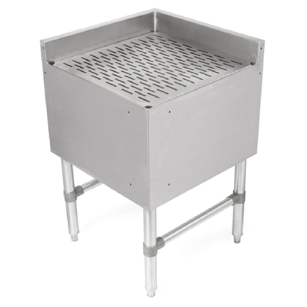 The John Boos UBDB-1818-90-IC Underbar Corner Drain Board Freestanding unit stands out with its compact dimensions of 18"W x 18"D x 32-1/2"H, making it an ideal fit for tight spaces in professional bars and restaurants. This drain board is designed with a top drain and a removable perforated insert, allowing for efficient water drainage and ease of cleaning, thereby maintaining hygiene standards. Constructed from 18/300 stainless steel, both the body and the legs demonstrate durability and resistance to corrosion, crucial for withstanding the rigors of busy commercial environments. The unit features a 3"H backsplash, a practical addition that helps to protect walls from water damage. The stainless steel legs are complemented with side bracing for added stability, while the adjustable stainless steel bullet feet ensure that the unit can be leveled on uneven surfaces. The NSF certification further underscores its compliance with industry standards for safety and sanitation. The John Boos UBDB-1818-90-IC is versatile, offering a specialized solution for establishments looking to maximize efficiency and cleanliness in their bar operations. Its well-thought-out design and rugged construction make it a practical and reliable choice for various segments within the hospitality industry.