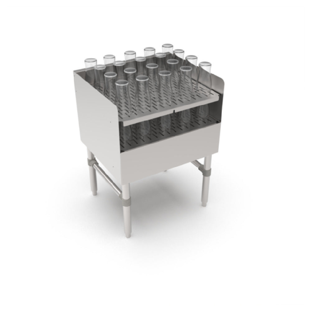 The John Boos UBDBR-2112 Underbar Drainboard Recessed Freestanding is a specialized piece of equipment measuring 12"W x 21"D x 32-1/2"H, designed to enhance efficiency in various food service settings. This freestanding drainboard features a top drain system accompanied by two removable perforated inserts, facilitating seamless drainage and easy cleaning. The drainboard is complemented by a 3"H backsplash, providing additional protection against spills and splashes. Constructed from 18/300 stainless steel, known for its durability and resistance to corrosion, this unit is built to withstand the rigors of commercial environments. The stainless steel legs and side bracing ensure robust support and stability. Additionally, the adjustable stainless steel bullet feet allow for precise leveling, accommodating uneven floors typical of many kitchen setups. Certified by NSF, this product adheres to strict hygiene and safety standards, making it a reliable choice for bars, restaurants, and cafes that require efficient and hygienic underbar solutions. The John Boos UBDBR-2112 is a practical investment for establishments seeking a durable and functional drainboard that integrates seamlessly into existing layouts while maintaining a high standard of cleanliness and operational efficiency.