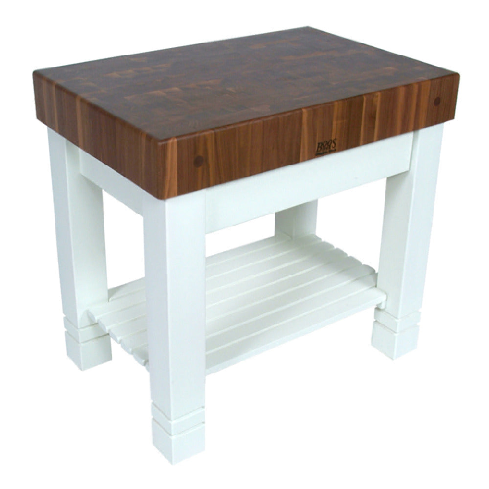 The John Boos WAL-HMST36245 American Heritage Homestead Block is a precision-crafted kitchen centerpiece that combines functionality with elegance. Measuring 36 inches in width, 24 inches in depth, and standing at 34 inches in height, this block offers a substantial working area. Its 5-inch thick end grain top, crafted from premium American Black Walnut, is not only visually appealing but also engineered for durability and resilience, featuring a protective oil finish that preserves its natural beauty. A slatted lower shelf enhances storage capabilities, providing ample space for kitchen essentials, while a seamless utensil drawer offers convenient access to tools and accessories, keeping your workspace organized. The painted base adds a touch of sophistication, seamlessly blending with various kitchen decors. This homestead block is ideal for culinary enthusiasts and professional chefs alike, offering a reliable surface for food preparation and presentation. The meticulous craftsmanship and practical design make the John Boos WAL-HMST36245 a versatile addition to home kitchens and commercial culinary environments, meeting the demands of diverse market segments within the industry. Its combination of aesthetic appeal and functional excellence sets it apart as a valuable asset in any culinary setting.