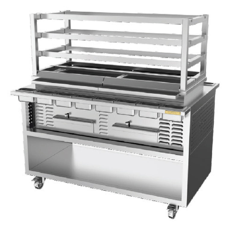 The Josper Charcoal Ovens MGJ-132 Mangal Grill Charcoal 57-1/4"W is a versatile and robust grilling solution designed for culinary professionals seeking high-performance cooking equipment. This charcoal oven boasts a substantial width of 57-1/4 inches, providing ample space for various cooking methods. Featuring four braising levels, each measuring 48-5/8 inches in width and 19-1/4 inches in depth, it caters to diverse cooking needs with precision and efficiency. The inclusion of one bottom stick and two top sticks enhances its versatility, allowing for a range of grilling techniques. Additionally, the oven is equipped with two tempering grill racks and 16 GN 1/9 trays, offering extensive capacity for culinary preparation. The lower open storage compartment provides convenient access to essential tools, while the grease tray and combustion shield ensure a clean and safe cooking environment. Supplied with tongs and an ash drawer, the oven facilitates efficient operation and maintenance. Mounted on casters, the oven is easily maneuverable, supporting dynamic kitchen environments. Certified by NSF, CE, and UL standards, the Josper Charcoal Ovens MGJ-132 ensures adherence to rigorous safety and quality benchmarks, making it an invaluable asset for professional kitchens seeking reliable and innovative grilling solutions.