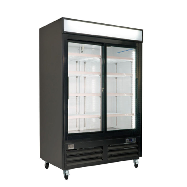Kelvinator Commercial, KCHSGM48R, (738319) 2-sliding glass door refrigerator 54" long, exterior back panel, bottom panel, and top panel in galvanized steel, exterior side panels in painted steel, interior back, side, and top panels in painted aluminum, and internal bottom panel in 304 stainless steel. Durable and easy to clean for daily commercial use, control with cabinet temperature display, self-closing door feature lock and key, R290 gas in the refrigeration circuit, 1/3 HP, 115v/60/1-ph, 4.5 amps, NEMA 5-15P. ETL Safety and Sanitation certifications (3/5 Years warranty)