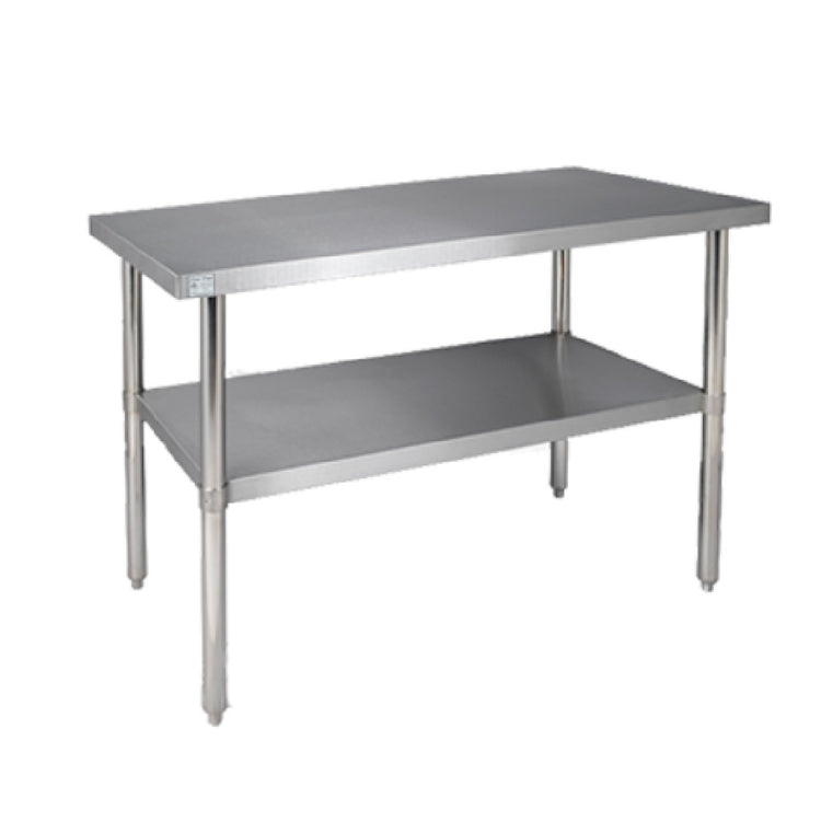 Klinger's Trading, 16GA-AST3036, Work Table, 36"W x 30"D x 36"H, 16/430 stainless steel top, turned down edges, reinforced with (3) hat channels, stainless steel undershelf & legs, adjustable bullet feet