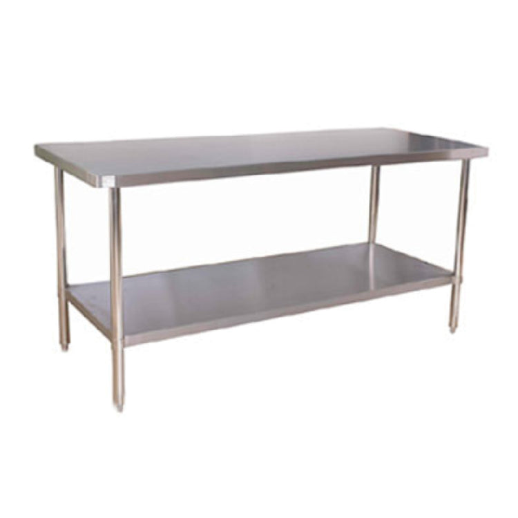 Klinger's Trading, AST3060, Work Table, 60"W x 30"D x 36"H, 18/430 stainless steel top, turned down edges, reinforced with (3) hat channels, stainless steel undershelf & legs, adjustable bullet feet
