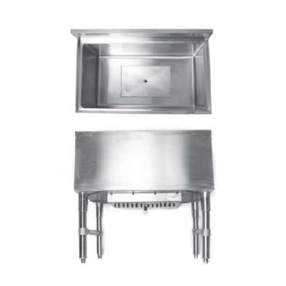 Klinger's Trading, IC1848-CP, Underbar Ice Chest, with cold plate, 48"W X 18"D x 29"H, 18/304 stainless steel construction, 48"W x 15"D x 11"deep bin, 4" backsplash, 130lbs. ice capacity, aluminum 8-circuit cold plate, 1-1/2" drain, stainless steel legs (cold plate is Made in the USA)