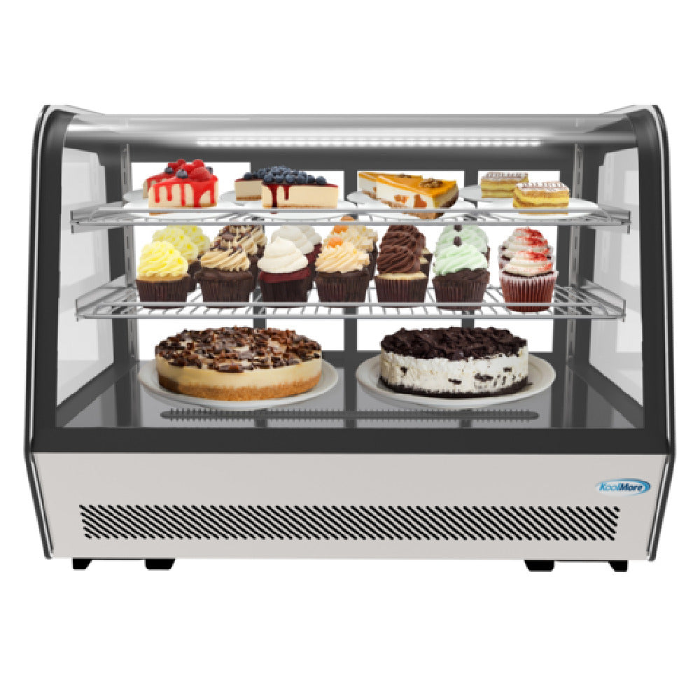 The Koolmore CDC-5C-BK Refrigerated Display Case Countertop 34-3/5"W is a sophisticated solution for businesses seeking to showcase their products with both style and functionality. This full-service unit features a curved front glass that enhances product visibility while maintaining an elegant presentation. With a capacity of 5.6 cubic feet, it offers ample space for various refrigerated items. The digital temperature control allows precision within a range of 32°F to 53°F (0°C to 12°C), ensuring optimal preservation conditions. The display case includes two adjustable shelves to accommodate different product sizes and configurations. Rear sliding glass doors and glass sides provide easy access and a complete view of the contents. Equipped with LED lighting, this unit highlights products attractively while being energy efficient. The ventilated cooling system and auto defrost feature ensure consistent performance and maintenance ease. Constructed with a stainless steel silver and black finish, it combines durability with a sleek design. The use of R290 refrigerant, with 3 amps and 2/7 HP power, further underscores its efficiency. Operating on 115v/60/1-ph, it comes with a NEMA 5-15P plug and holds cETLus and ETL-Sanitation certifications, making it a reliable choice for various commercial settings.