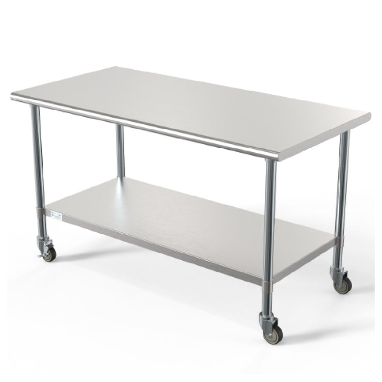 The Koolmore CT3060-18C Work Table is a versatile and robust addition to any professional kitchen, boasting dimensions of 60"W x 30"D x 34"H. Constructed from high-quality 18/304 stainless steel, this work table ensures durability and resistance to corrosion, making it ideal for busy culinary environments. The inclusion of a practical undershelf provides additional storage space, optimizing organization and efficiency in the workspace. Designed with mobility in mind, the table is equipped with 5" lockable rolling caster wheels, allowing for easy repositioning and stability when needed. This feature is particularly beneficial for dynamic kitchen settings where flexibility is crucial. Furthermore, the Koolmore CT3060-18C Work Table is NSF certified, confirming its compliance with public health and safety standards, which is a significant consideration for establishments focused on maintaining stringent hygiene practices. This work table is a reliable and functional choice for restaurants, catering services, and other food operations, offering exceptional performance and adaptability to meet the varied demands of the food industry.