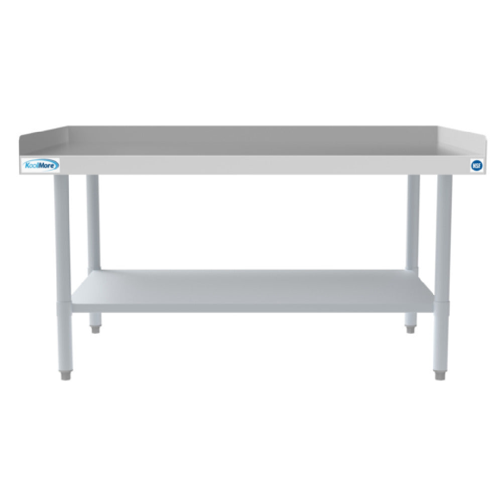 The Koolmore EQT-163048 Equipment Stand 48"W X 30"D Adjustable Under-shelf is a robust and versatile addition to any professional kitchen or food service environment. Constructed from durable 16-gauge stainless steel, this equipment stand ensures longevity and resistance to everyday wear and tear. Measuring 48 inches in width and 30 inches in depth, it provides ample surface area to accommodate a variety of kitchen appliances and tools. A key feature of this stand is its adjustable under-shelf, offering customizable storage solutions to maximize efficiency and organization in bustling kitchen spaces. The inclusion of a 2-inch edging enhances safety by preventing spills or equipment slippage. Certified by the National Sanitation Foundation (NSF), the Koolmore EQT-163048 meets stringent public health and safety standards, making it an ideal choice for establishments that prioritize hygiene and reliability. This equipment stand is particularly beneficial for different segment markets within the food industry, from large-scale commercial kitchens seeking durable and adaptable workspace solutions to small eateries desiring high-quality, space-efficient equipment. Its practical design and construction make it a valuable asset in any culinary setting, supporting a seamless workflow and elevating operational standards.