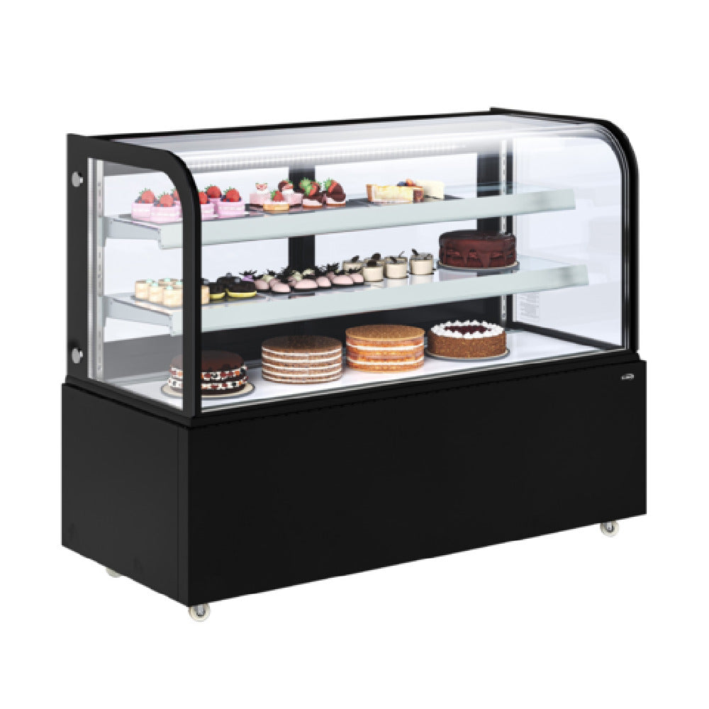 The Koolmore KM-CDHF-17C-BK Bakery Display Case Refrigerated 60"W is a versatile and efficient solution for displaying baked goods while maintaining optimal freshness. With a spacious 17.6 cubic feet capacity, this unit is designed to accommodate a wide variety of products. It features two adjustable shelves, providing flexible storage options to cater to different product sizes and display requirements. The curved front glass not only enhances the visual appeal but also ensures maximum visibility of the items on display. Built-in LED lighting further illuminates the products, making them more attractive to customers. The unit is equipped with digital temperature controls and display, allowing precise and easy management of the internal environment to keep products fresh. The sliding doors facilitate convenient access to the displayed goods, enhancing operational efficiency. Mounted on four casters, the Koolmore KM-CDHF-17C-BK offers mobility for easy relocation within your space. Constructed with a durable stainless steel frame and a sleek black finish, this display case is both robust and stylish. Utilizing R290 refrigerant, it aligns with environmental standards, making it a sustainable choice for bakery display needs. This product is ideal for bakeries, cafes, and retail spaces seeking a reliable and attractive solution for product presentation.