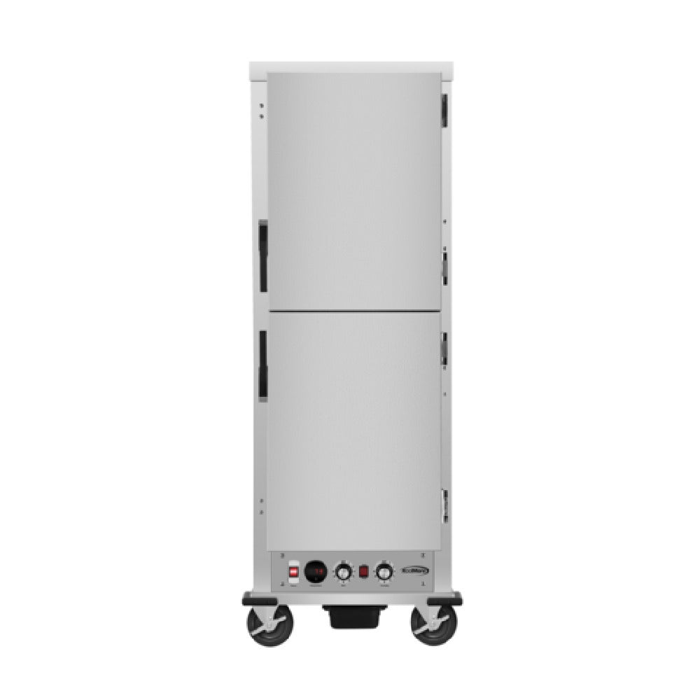 The Koolmore KM-CHP36-SIDD Commercial Heated Holding/Proofing Cabinet is a meticulously designed piece of equipment tailored for the demanding environments of commercial kitchens. This insulated, full-size unit stands at 67-1/2 inches in height, with a width of 33-2/5 inches and a depth of 23 inches, providing substantial space within a compact footprint. The cabinet boasts a remarkable capacity to house up to 36 pans, making it an indispensable asset for bakeries and food service operations that require efficient storage and proofing solutions. Featuring a solid dutch door design, it enhances accessibility while maintaining optimal thermal efficiency. The cabinet operates on a 120V/60Hz/1-ph electrical system and delivers a power output of 1500 watts, ensuring consistent and reliable heating performance. Its robust aluminum exterior offers durability and a professional aesthetic, while the NSF certification underscores its compliance with stringent health and safety standards. This cabinet is particularly advantageous for establishments where maintaining precise temperature control and humidity levels is critical, thereby preserving the quality and freshness of baked goods and other perishable items. The Koolmore KM-CHP36-SIDD is a versatile solution tailored to meet the needs of diverse market segments within the culinary industry.