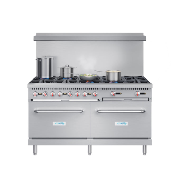 The Koolmore KM-CR60-NG Commercial Range Natural Gas 60" W is a powerful and versatile addition to any professional kitchen. This high-performance range features ten burners, providing ample cooking power for a wide variety of culinary tasks. Ideal for restaurants, catering services, and institutional kitchens, it offers dual ovens that expand cooking capacity, allowing simultaneous preparation of multiple dishes. Constructed from durable stainless steel, the range is designed to withstand the rigorous demands of commercial use while maintaining a sleek and professional appearance. The 60-inch width ensures sufficient space for multiple chefs to work efficiently, making it suitable for high-volume food service operations. The natural gas configuration ensures consistent and reliable heat distribution, which is critical for precise cooking and baking outcomes. This commercial-grade appliance is engineered to meet the needs of diverse market segments within the food service industry, offering a reliable and robust solution for chefs and kitchen operators who require both performance and durability. The Koolmore KM-CR60-NG's combination of multiple burners and ovens, along with its sturdy construction, makes it a valuable asset in any culinary environment where efficiency and quality are paramount.