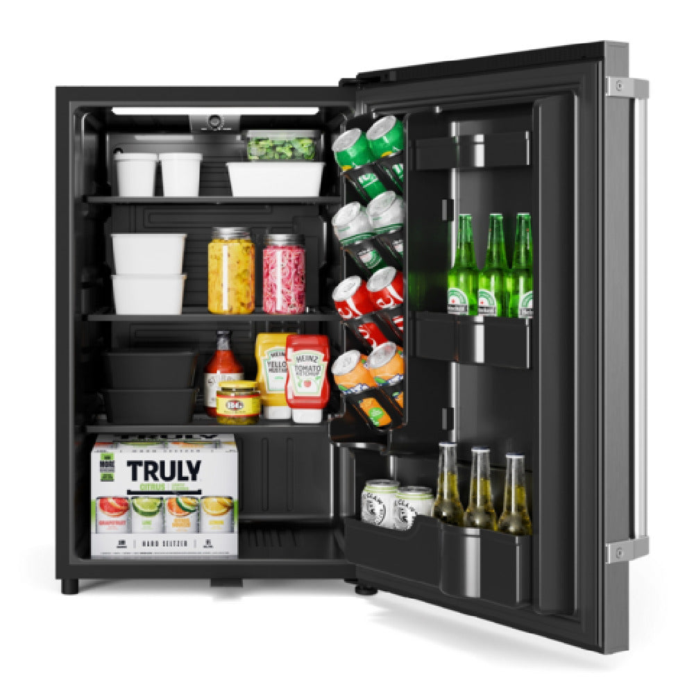 Koolmore, KM-OKS-OFRC-44SS, KoolMore Outdoor Refrigerator, 21"W x 20.625"D x 33.25"H, 4.4 cu. ft., (3) glass shelves, water resistant IPX 4 rating, (92) cans capacity, 32 - 50°F temperature range, stainless steel, CSA Listed, ENERGY STAR®, Shipping Dimension (22.75" W x 22.25" D x 34.5" H)