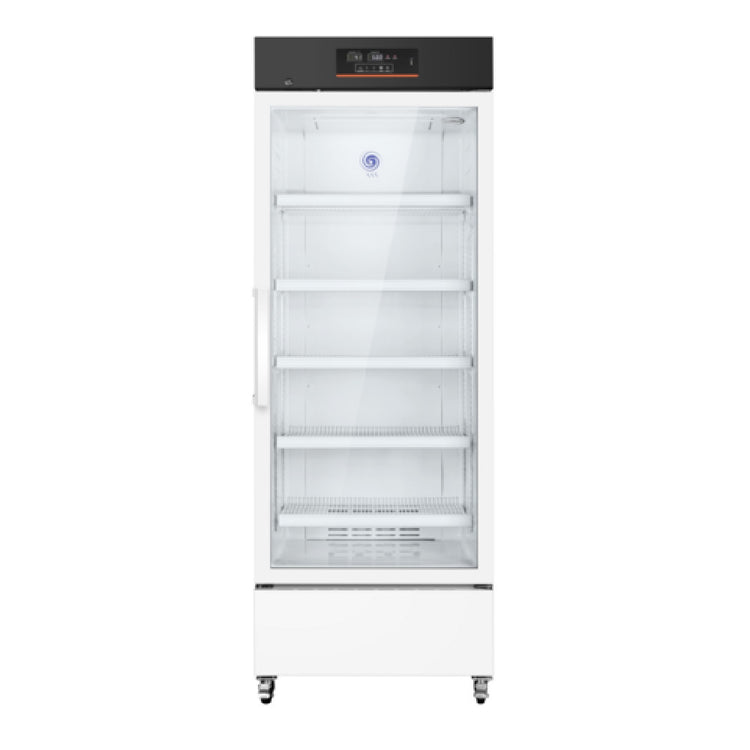 The Koolmore KM-PHR-15C Commercial Medical Pharmacy Refrigerator is a versatile unit with dimensions of 26"W x 27"D x 75-3/5"H, providing a substantial 15 cu. ft. of storage, making it an ideal choice for medical and pharmaceutical environments requiring precise temperature control. This refrigerator is equipped with an emergency backup battery (12V), ensuring continuous operation during power outages. The digital temperature control and humidity display allow for meticulous environmental management, essential for sensitive medical supplies. The adjustable storage shelves provide flexibility to accommodate various storage needs, while the electric heated glass door minimizes condensation for clear visibility. An automatic defrost system ensures hassle-free maintenance, and the unit utilizes R600a refrigerant, known for its efficiency and environmentally friendly properties. The Koolmore KM-PHR-15C is UL Listed, emphasizing its compliance with safety and quality standards, making it a reliable and efficient storage solution for hospitals, pharmacies, and laboratories that demand consistent and safe refrigeration of critical medical products.