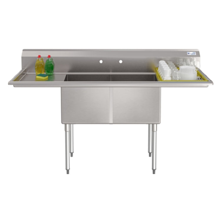 Koolmore, KM-SB181814-18B3, Commercial Sink, (2) Compartment, 72"W, 18-gauge stainless steel, dual 18"W x 18"D x 14"H bowls, 18" drainboards on each side, corrosion-resistant construction, 9.72"H backsplash, wall-mountable for space-saving, NSF, Shipping Dimension (27" W x 75.5" D x 28.9" H)