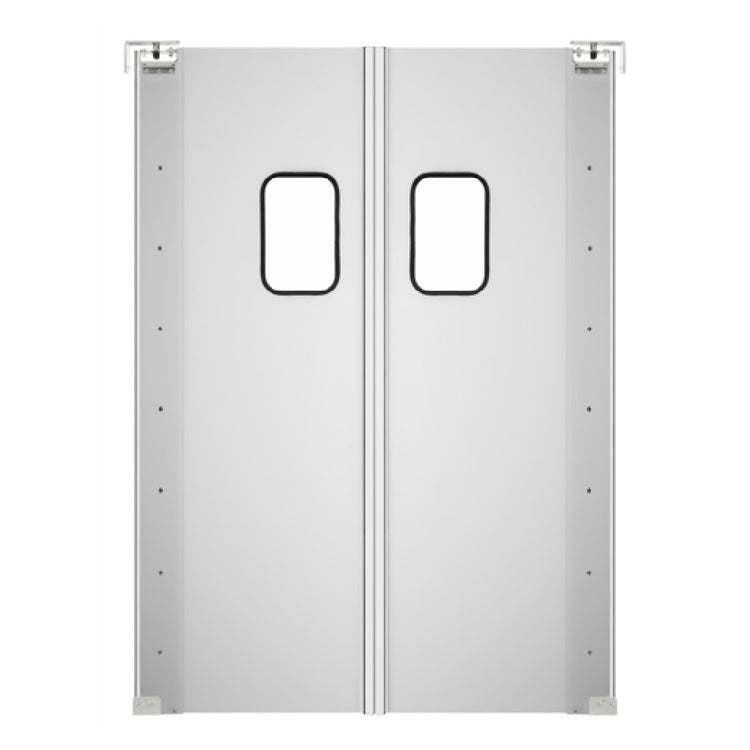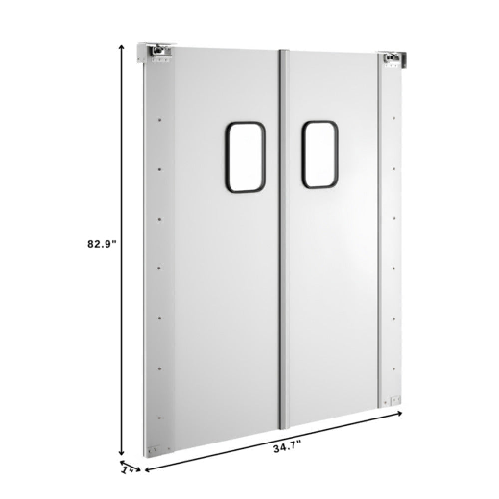 Koolmore, KM-SWD36X2, Traffic Door, aluminum, double panel, fit standard 72" W x 84" H in. openings, self closing swing door style, built in 9 in. x 14 in. polycarbonate window, adjustable top hinge, Shipping Dimension (8.66" W x 36.22" D x 84.65" H)