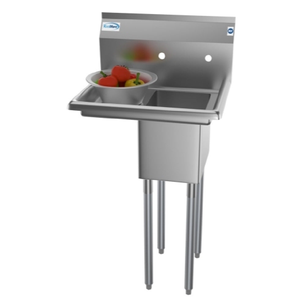 The Koolmore SA101410-10L3 Sink 1-compartment 23"W X 20"D X 44-1/2"H overall size is a high-quality fixture crafted for diverse culinary and commercial environments. This sink features a single compartment measuring 10"W x 14" front-to-back x 10" deep, providing ample space for various cleaning tasks. It includes a 10" left side drainboard, which offers additional workspace for drying and organization. Designed with a backsplash to prevent water spills and maintain cleanliness, this unit is both practical and efficient. The sink is constructed from 18/304 stainless steel, ensuring durability and resistance to corrosion, while its galvanized steel legs and adjustable 1-1/2" bullet feet allow for stability on uneven surfaces. The sink is equipped with a set of splash mount faucet holes with 8" centers, facilitating easy installation of compatible faucets. A 3-1/2" basket drain with a strainer ensures effective drainage, reducing the risk of clogs. NSF certification underscores its compliance with health standards, making it suitable for use in professional kitchens, restaurants, and food preparation areas. The Koolmore SA101410-10L3 Sink is designed to meet the rigorous demands of various industry segments, providing a reliable and efficient solution for your workspace.