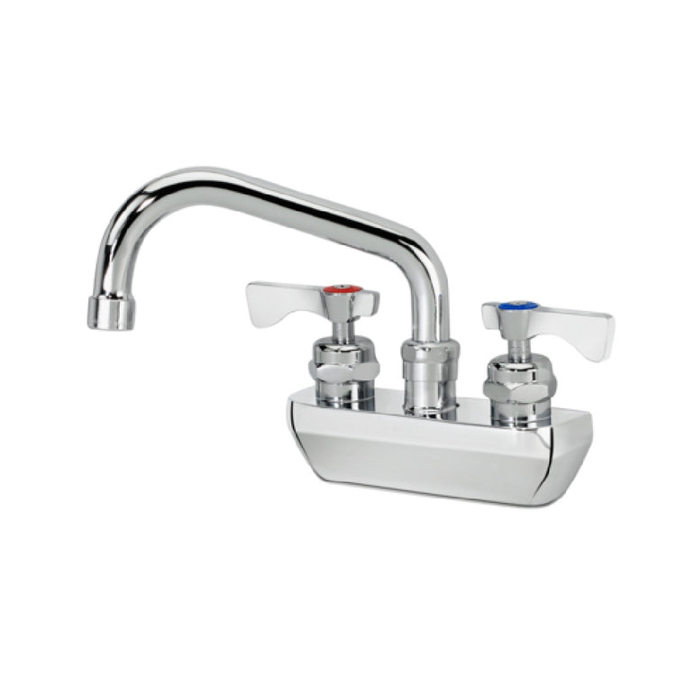 The Krowne 14-406L Krowne Royal Series Faucet is a precision-engineered plumbing solution tailored for professional environments requiring reliable and efficient water management. This faucet is splash-mounted with a 4-inch centerset design, making it suitable for compact and versatile installations. It features a 6-inch swing spout, allowing for adaptable water delivery across various sink basins. The inclusion of a quarter-turn ceramic cartridge valve enhances the faucet’s durability and ease of operation, while integrated backflow preventers ensure the highest standards of safety by preventing water contamination. The faucet's chrome finish not only provides a contemporary aesthetic appeal but also ensures longevity and resistance to wear. It adheres to low lead compliance, making it a responsible choice for environmentally conscious establishments. Certified by NSF, this product meets rigorous health standards, affirming its suitability for commercial kitchens and sanitary environments. The mounting kit included with the faucet facilitates straightforward installation, reducing setup time and effort. Additionally, internal check valves are incorporated to further safeguard against backflow and cross-contamination, reinforcing the faucet's commitment to maintaining pristine water quality. The Krowne Royal Series Faucet is an ideal choice for industries demanding high-performance plumbing fixtures, such as restaurants, hospitality venues, and institutional kitchens.