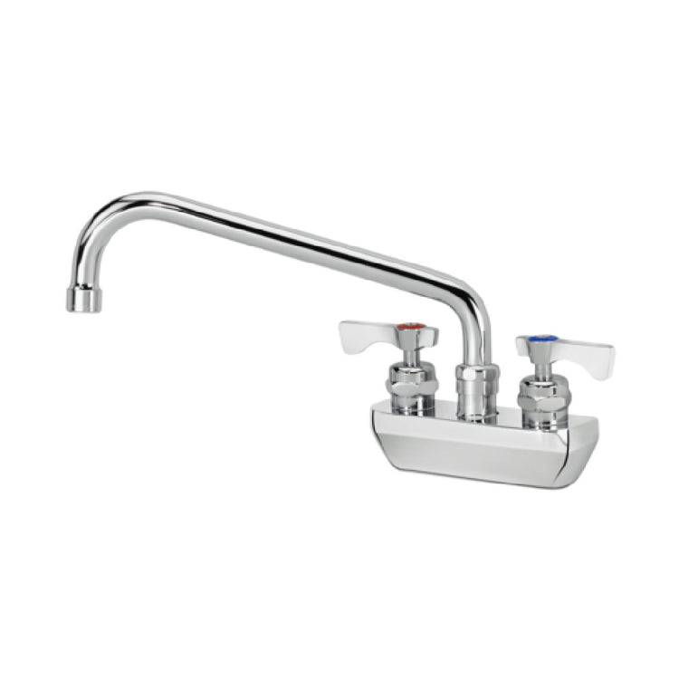 The Krowne 14-410L Krowne Royal Series Faucet is a splash-mounted fixture designed for efficiency and reliability, ideal for a wide array of commercial kitchen settings. Featuring 4" centers, it is equipped with a 10" swing spout, providing ample reach and flexibility for various washing tasks. The faucet incorporates a quarter-turn ceramic cartridge valve that ensures smooth operation and durability, accompanied by built-in backflow preventers to safeguard against contamination. This specification makes it particularly valuable for establishments that prioritize stringent hygiene standards, such as healthcare and food service industries. The faucet's chrome finish not only adds a sleek, modern touch to any sink area but also enhances its resistance to corrosion, ensuring longevity. It includes a complete mounting kit for straightforward installation, and its low lead compliance aligns with strict health safety regulations. Notably, the faucet is NSF certified, underscoring its adherence to public health standards. Additionally, internal check valves are incorporated to prevent backflow and cross-contamination, making it a versatile and essential component in maintaining a sanitary and efficient workflow across different market segments. Whether for a bustling restaurant or a healthcare facility, the Krowne 14-410L delivers reliable performance and superior functionality.