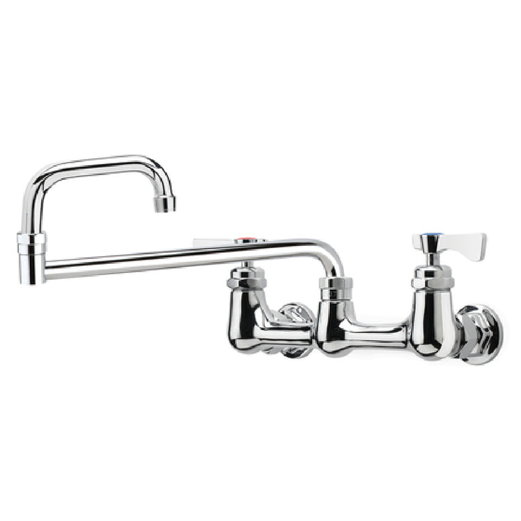 The Krowne 14-818L Krowne Royal Series Faucet is engineered for precision and efficiency, featuring a splash-mounted design and 8" centers, making it suitable for various industrial applications. This faucet boasts an 18" jointed spout, providing flexibility and reach, ideal for environments that demand adaptability, such as commercial kitchens and laboratories. Its quarter-turn ceramic cartridge valve ensures a smooth operation, reducing wear and enhancing longevity, which is crucial for high-usage settings. Low lead compliance emphasizes safety and environmental responsibility, aligning with modern regulatory standards. An important technical feature of this faucet is its inclusion of internal check valves, which are instrumental in preventing backflow and cross contamination - a critical aspect for maintaining cleanliness and hygiene in food service and healthcare industries. Certified by NSF, this product guarantees adherence to strict public health standards, underscoring its reliability and quality. The Krowne 14-818L Royal Series Faucet is a versatile and durable choice for professionals seeking a dependable solution that combines functionality with safety in demanding environments.